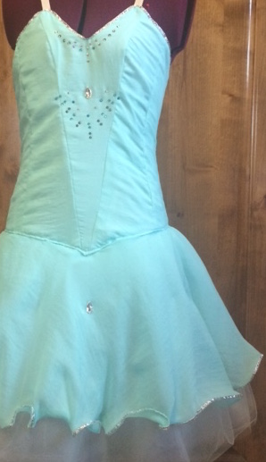 Soft bell-style tutu with silk-style habutae bodice and overlay, romantic tulle and stiff netting, and four-way stretch lycra made for individual client for pas de trois first variation in “Swan Lake.” Attached Russian-style bodice with boning and lining has hook-and-eye closure. Hand-sewn silver trim with Swarovski crystals and tear-drops.